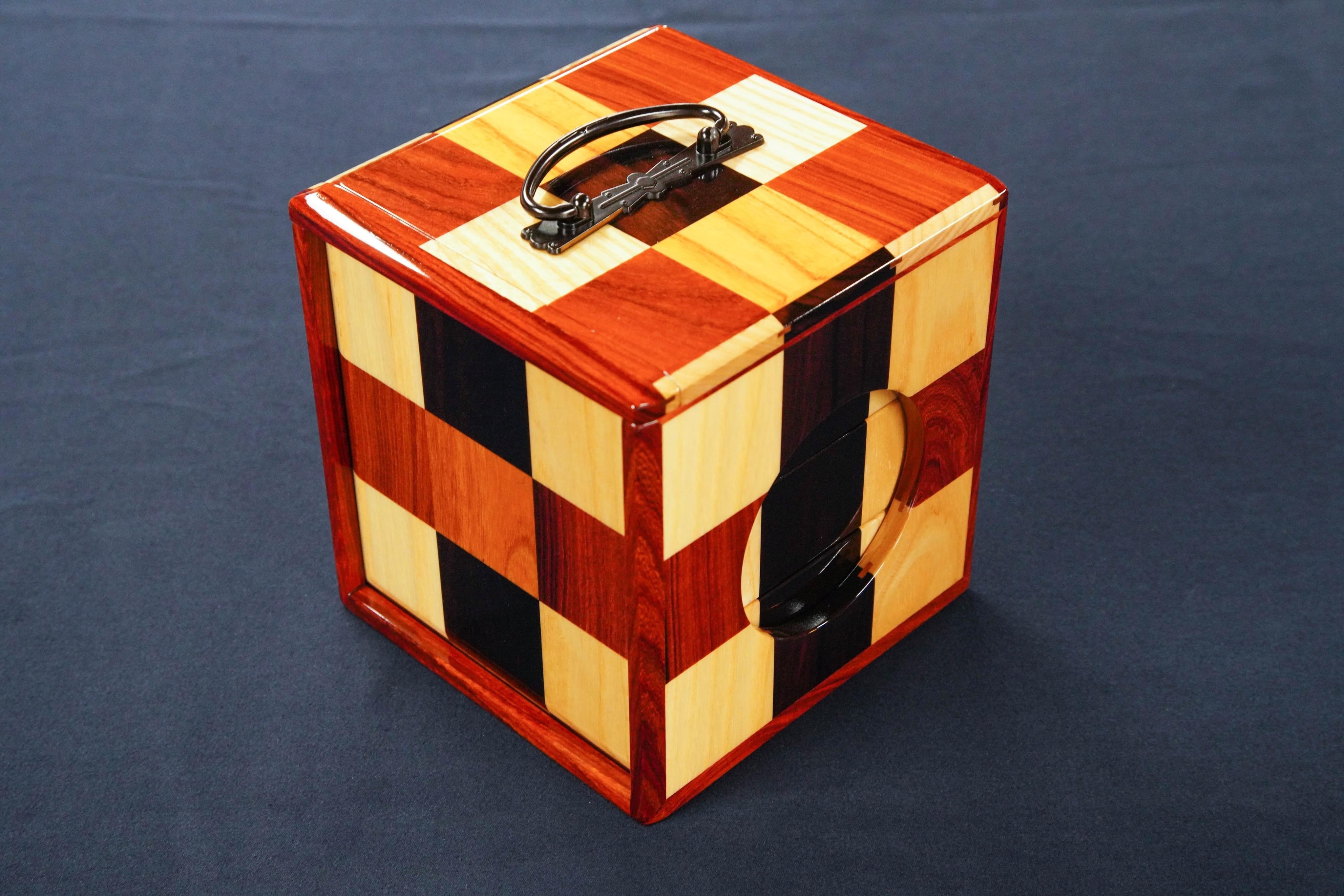 高級な唐木を使用した寄せ木遊山箱。一つ一つ手作りされた美しいデザインと、贅沢な唐木の風合いが魅力です。この箱は、贈り物やインテリアとしても最適です。